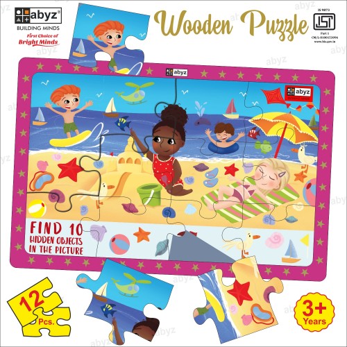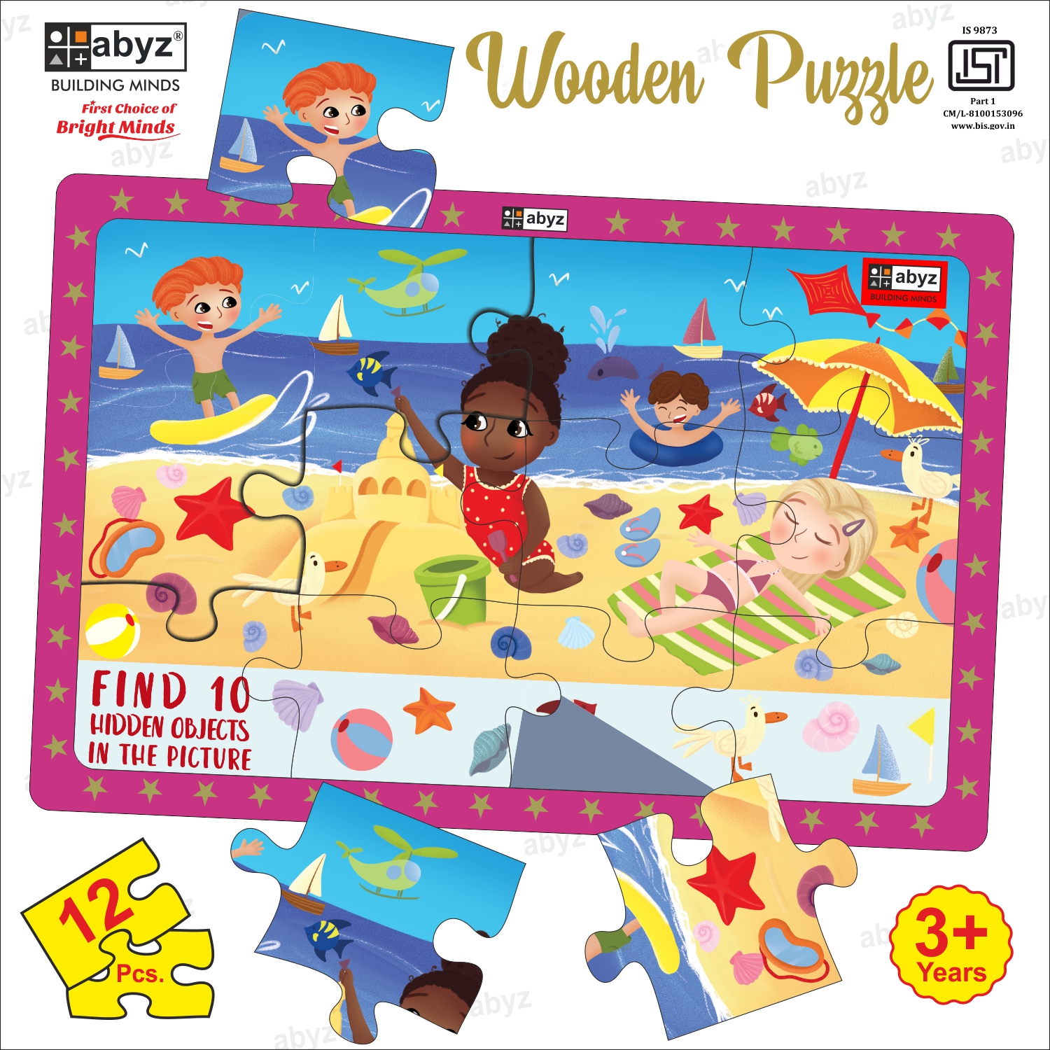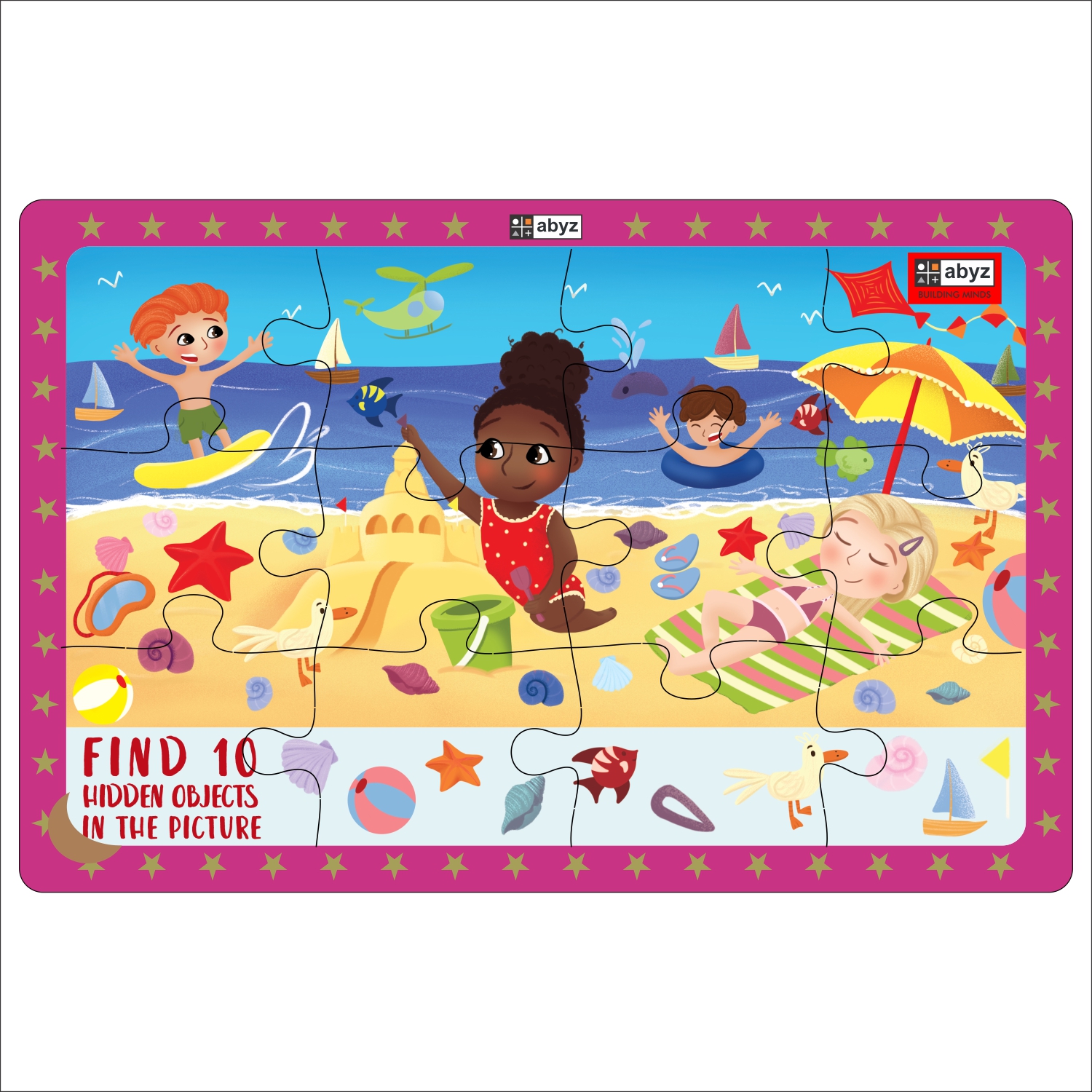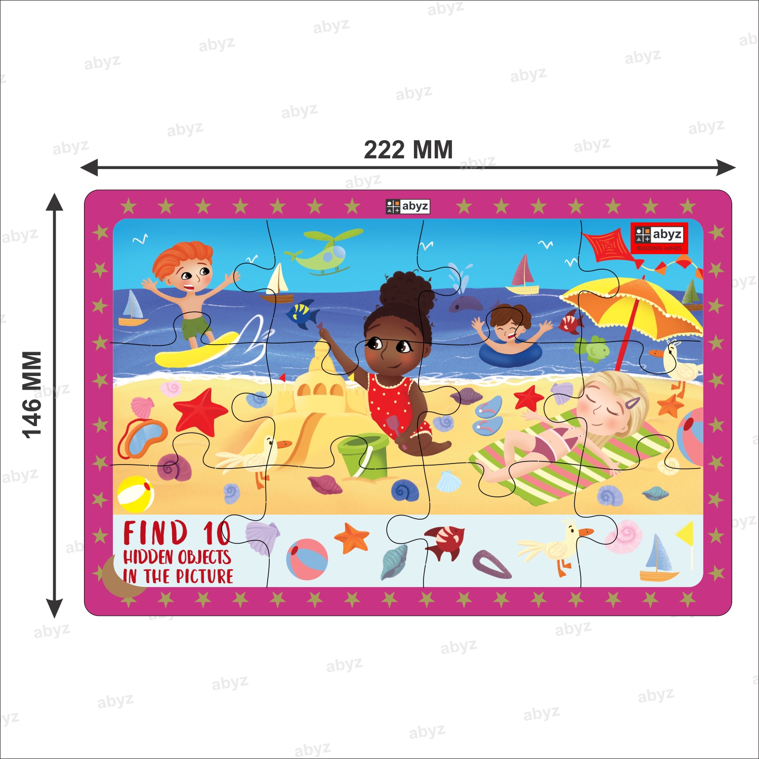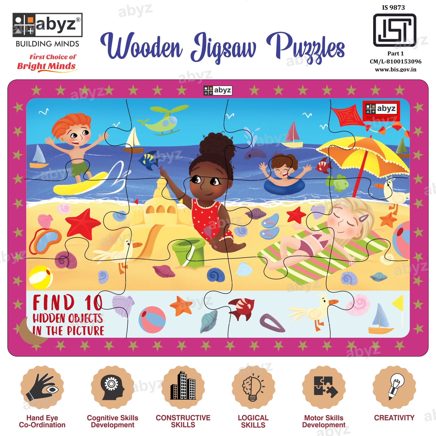 Introducing the ABYZ Beach Play Jigsaw Puzzle, a Premium Wooden Puzzle with 20 PIECES with find the things