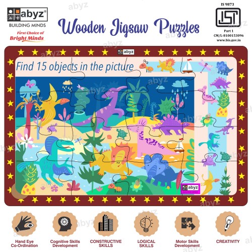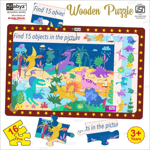 Introducing the ABYZ Dinosaurs Era Jigsaw Puzzle, a Premium Wooden Puzzle with 16 PIECES with find the things