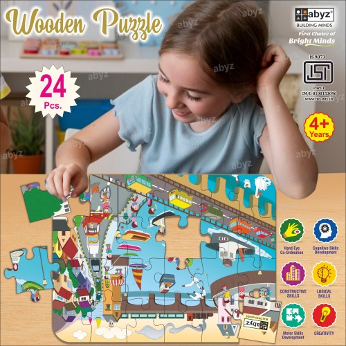 Introducing the ABYZ COASTAL CITY Jigsaw Puzzle, a Premium Wooden Puzzle with 24 Pieces Respectively