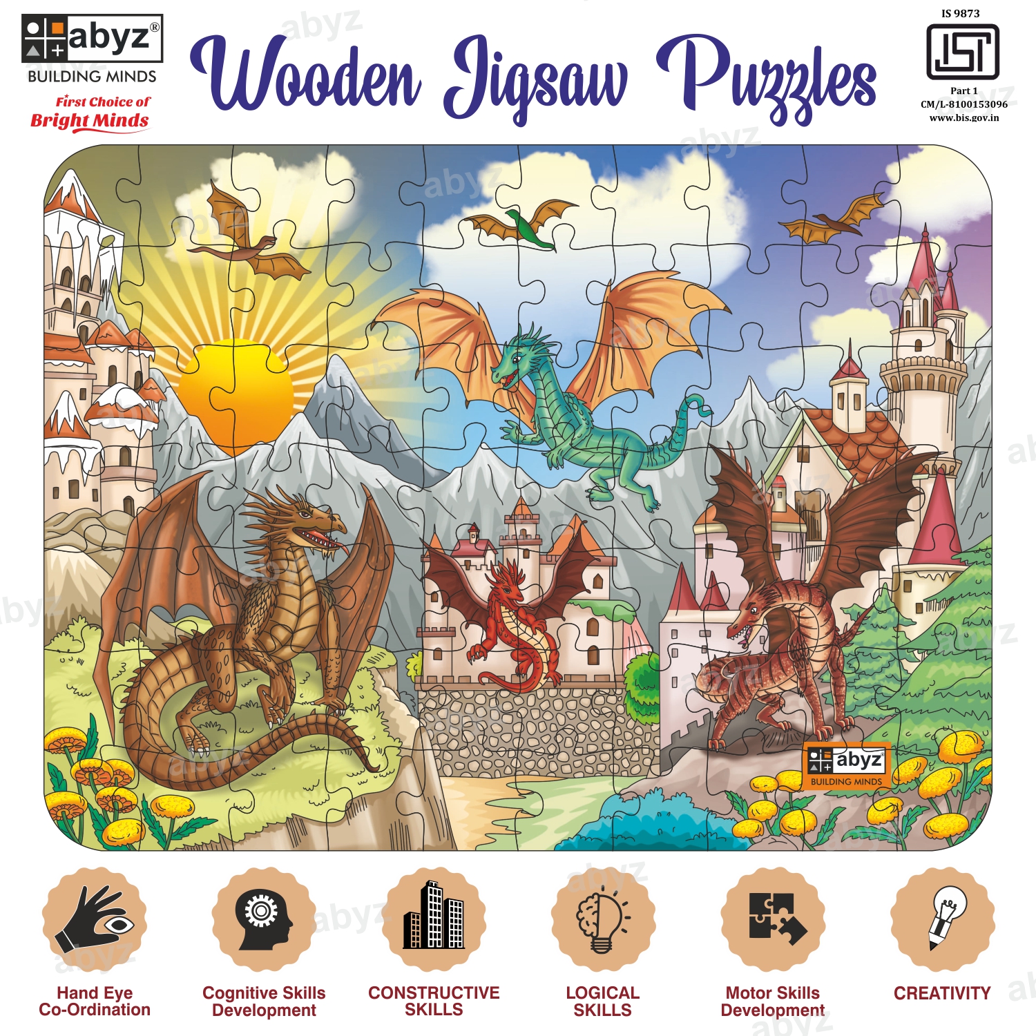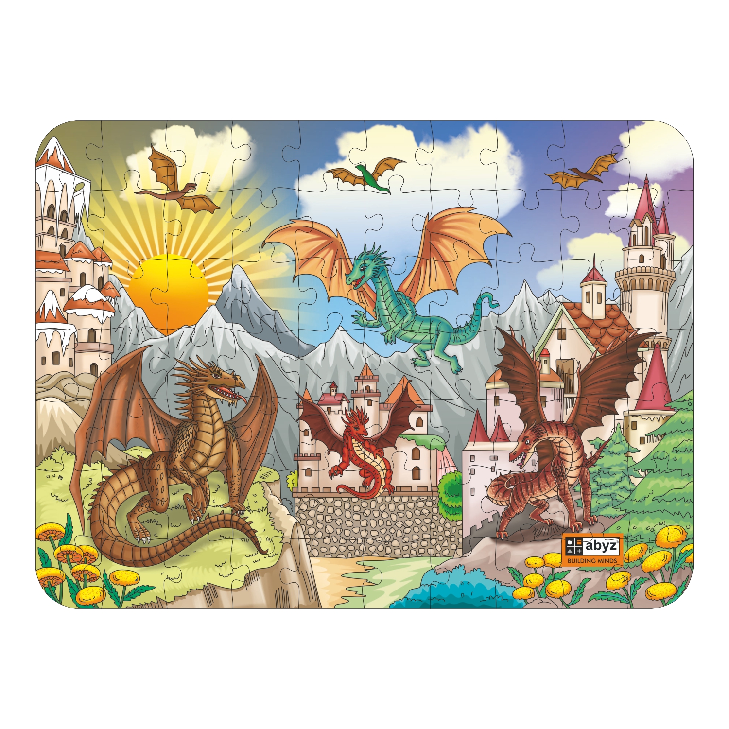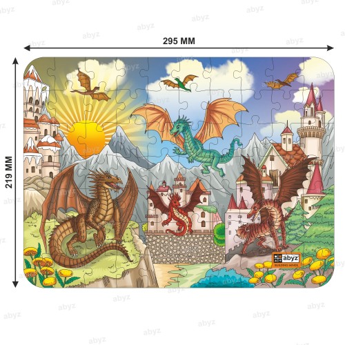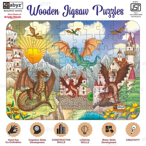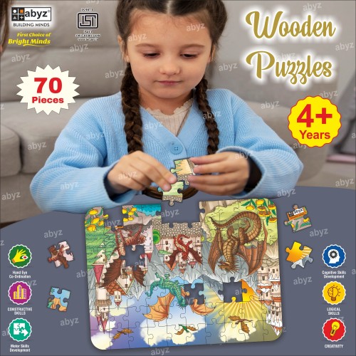 "Introducing the ABYZ DRAGON LAND Jigsaw Puzzle, a Premium Wooden Puzzle with 70 Pieces Respectively