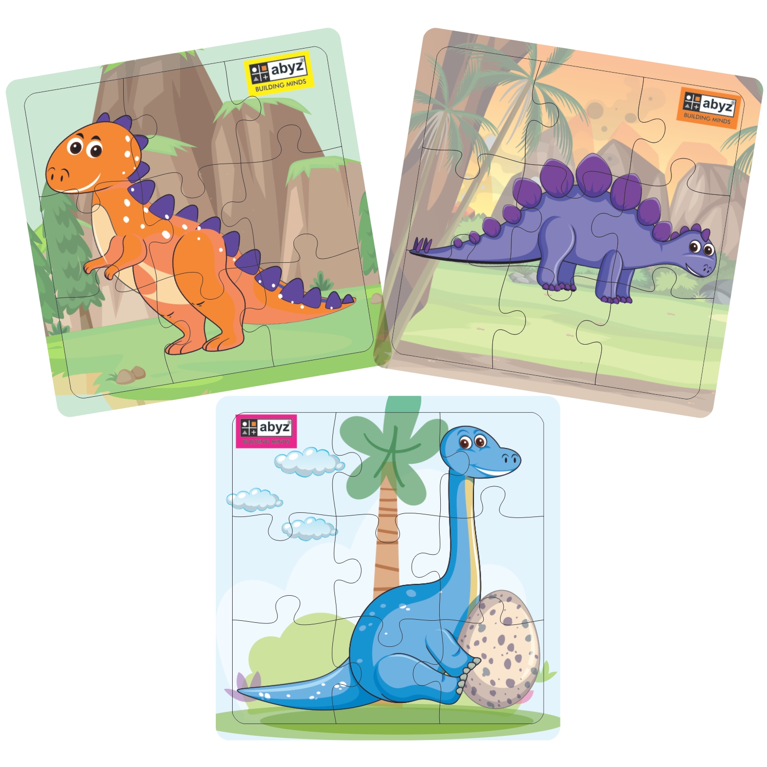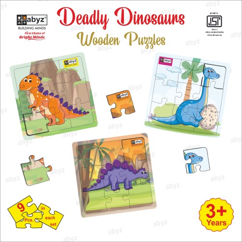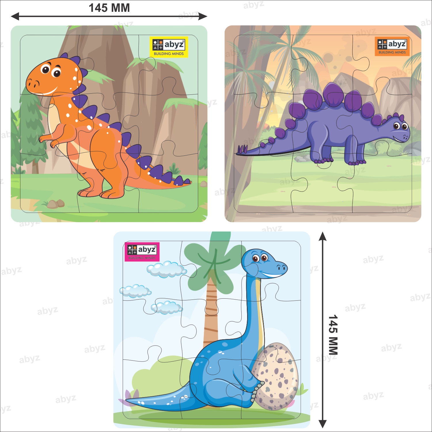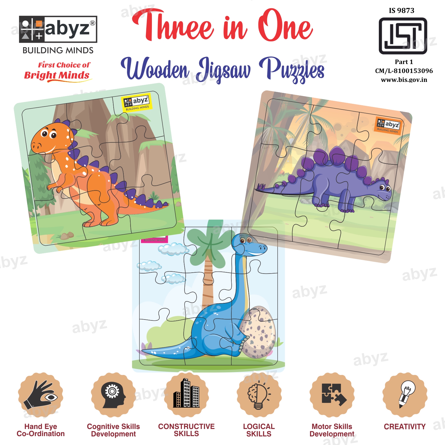 "Introducing the ABYZ ""3-in-1""Dinosaurs Jigsaw Puzzle, a Premium Wooden Puzzle with 9 Pieces (Set of 3 ):