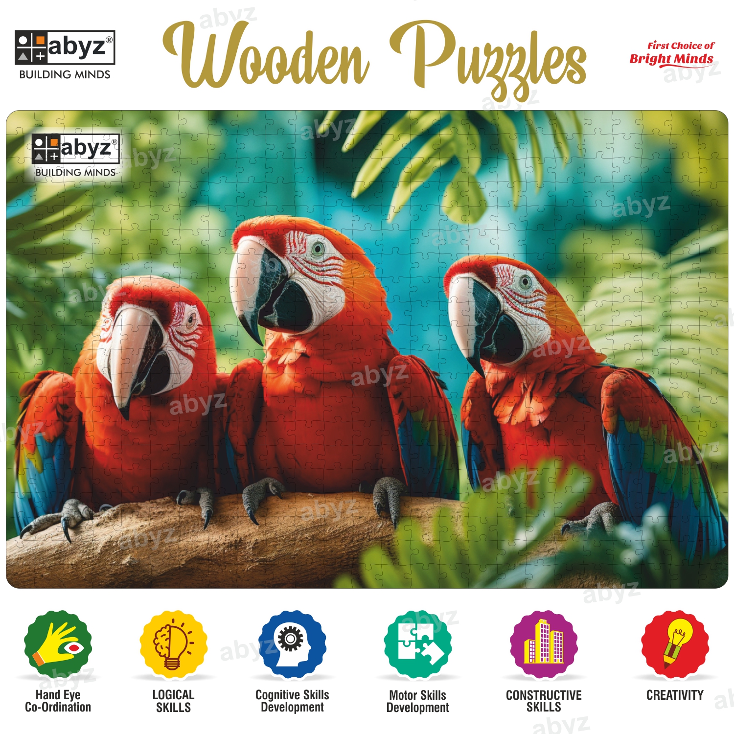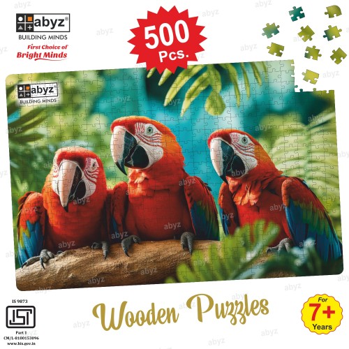 The ABYZ Group of colorful macaws Puzzle is a fantastic educational tool and a fun activity for both Kids and Children and adults. With 500 pieces, it offers a challenging yet rewarding experience that can enhance various cognitive skills such as concentration, shape recognition, hand-eye coordination, and problem-solving. Plus, it's made of wood, which adds a tactile and durable aspect to the puzzle.